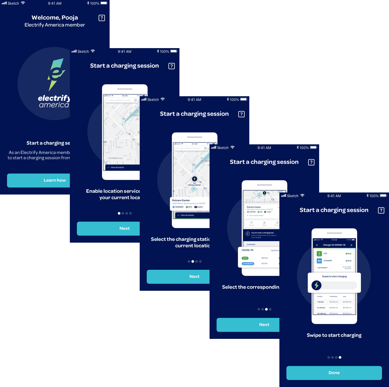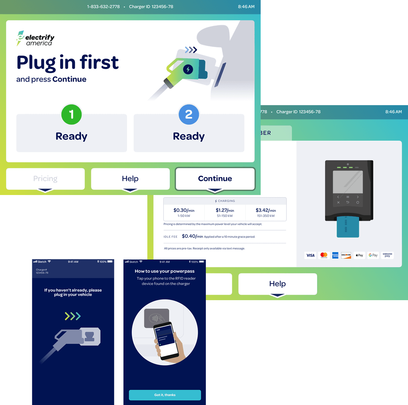 Electrify America is a subsidiary of Volkswagen that invested $2B in an initiative to support adoption of zero-emission vehicles in North America. They needed a cohesive EV charging experience across a new mobile, online desktop, and HMI experience for thousands of charging stations while building a trusted and recognizable brand.