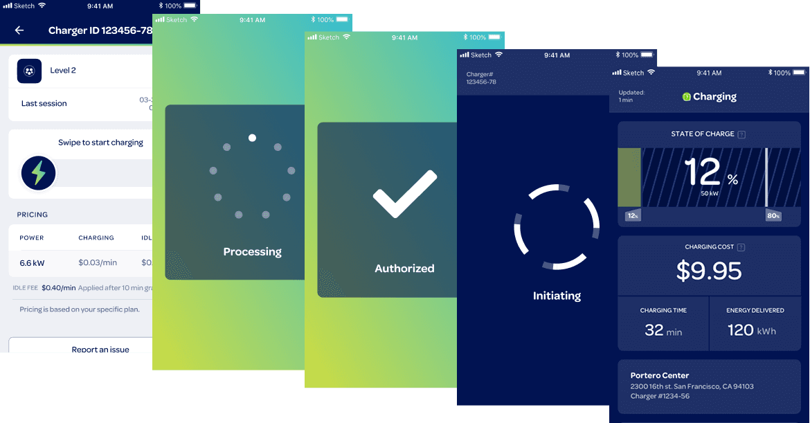 Detailed system status and in-session updates are provided both at and away from charging site.