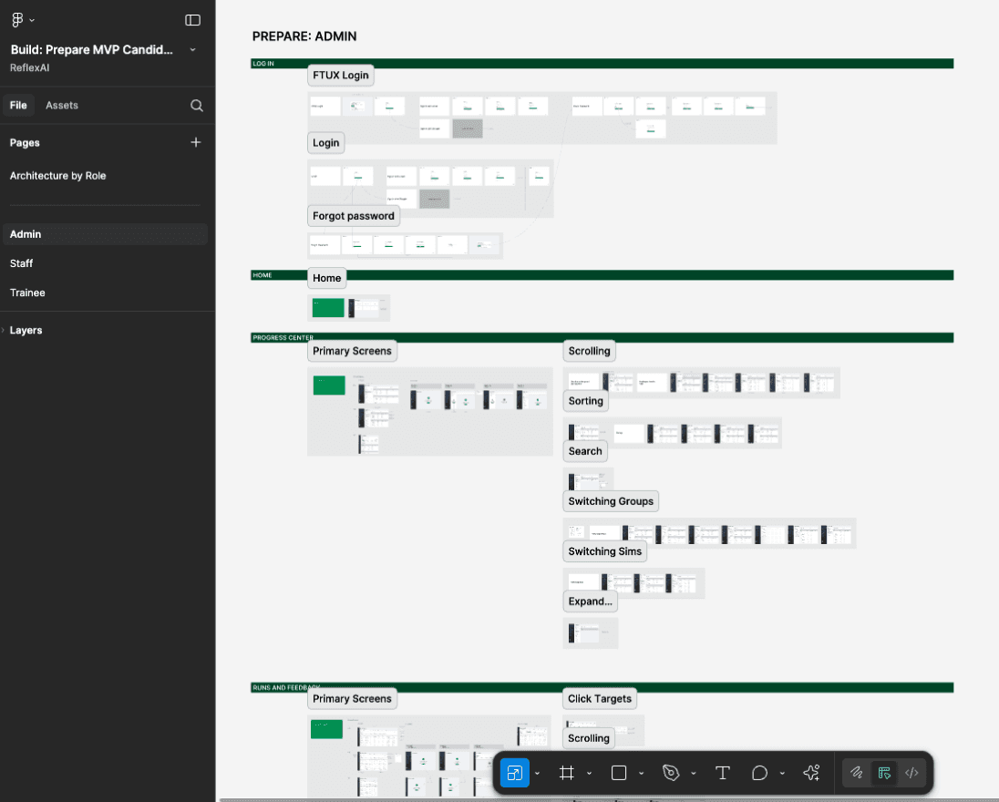 An audit of the existing demo revealed where key functions were missing between staff and trainees (our primary personas)